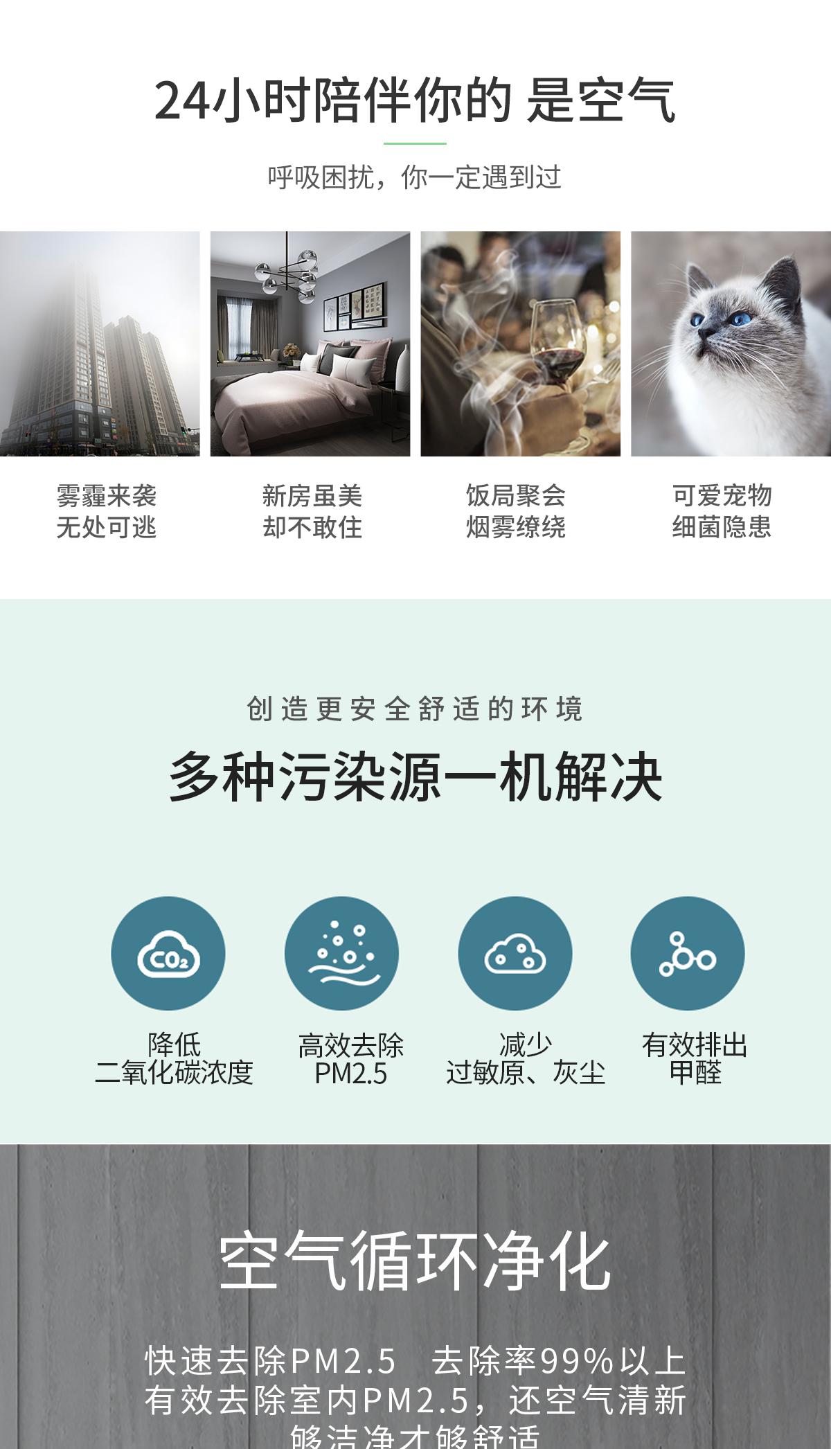 雙向換氣 室內外氣體等量置換。獨特的熱交換器設計,把室內污濁空氣與室外新鮮空完全分開,防止室內外空氣交叉污染 靜音設計,安全可靠 內置低噪音外轉子離心風機,機組璧覆有新型吸聲材料,運行平穩噪音低,防止了對現場的干擾。整機除風機外無運動部件,幾乎無需維護,可確保長期穩定可靠工作 過濾凈化功能 進入室內的空氣在機組中經專業級過濾器過濾,有效防止灰塵和有害物質進入室內,保持室內空氣新鮮,同時可選用靜電凈化器、負離子發生器、光觸媒等凈化設備