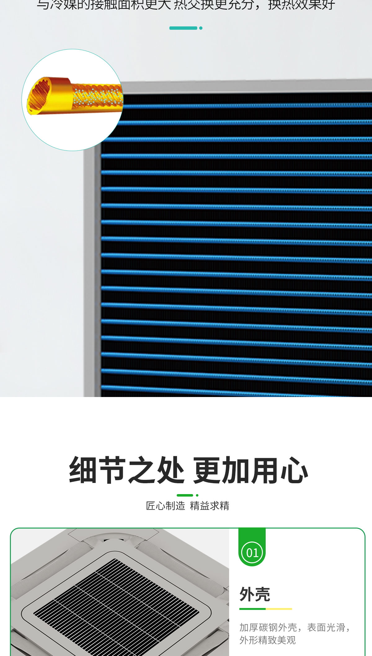 360°廣角送風,氣流均勻送達房間各個角落,出風柔和,舒適度更高 特有高、中、低3檔風速設計,針對不同安裝高度,可設定相應的送風檔,輕松滿足不同安裝高度的送風需求 卡式風機盤管預留新風引入接口,可用導管將室外新風引入、經(jīng)由全新的長效過濾網(wǎng),令室內(nèi)空氣清新健康更持久