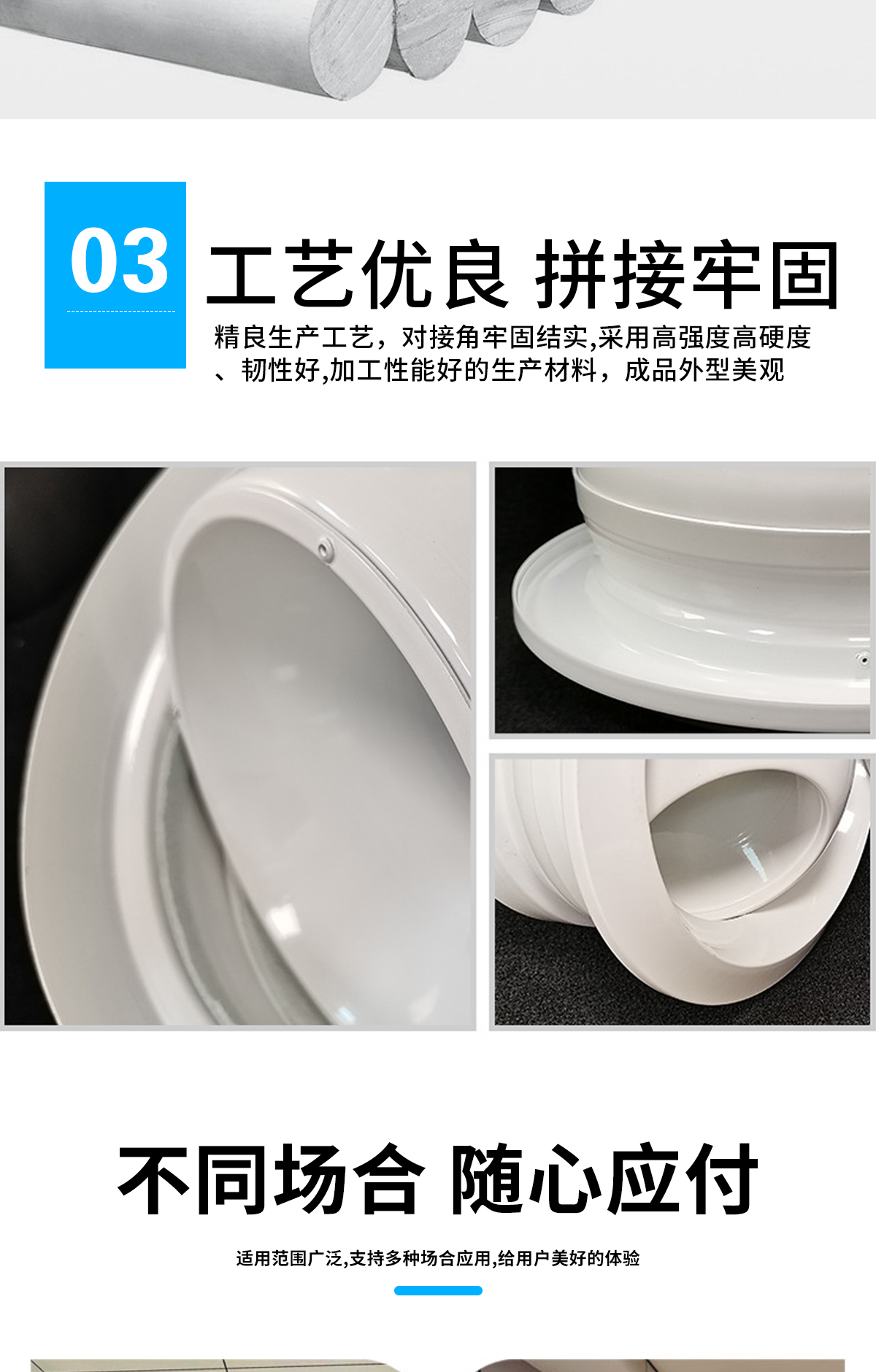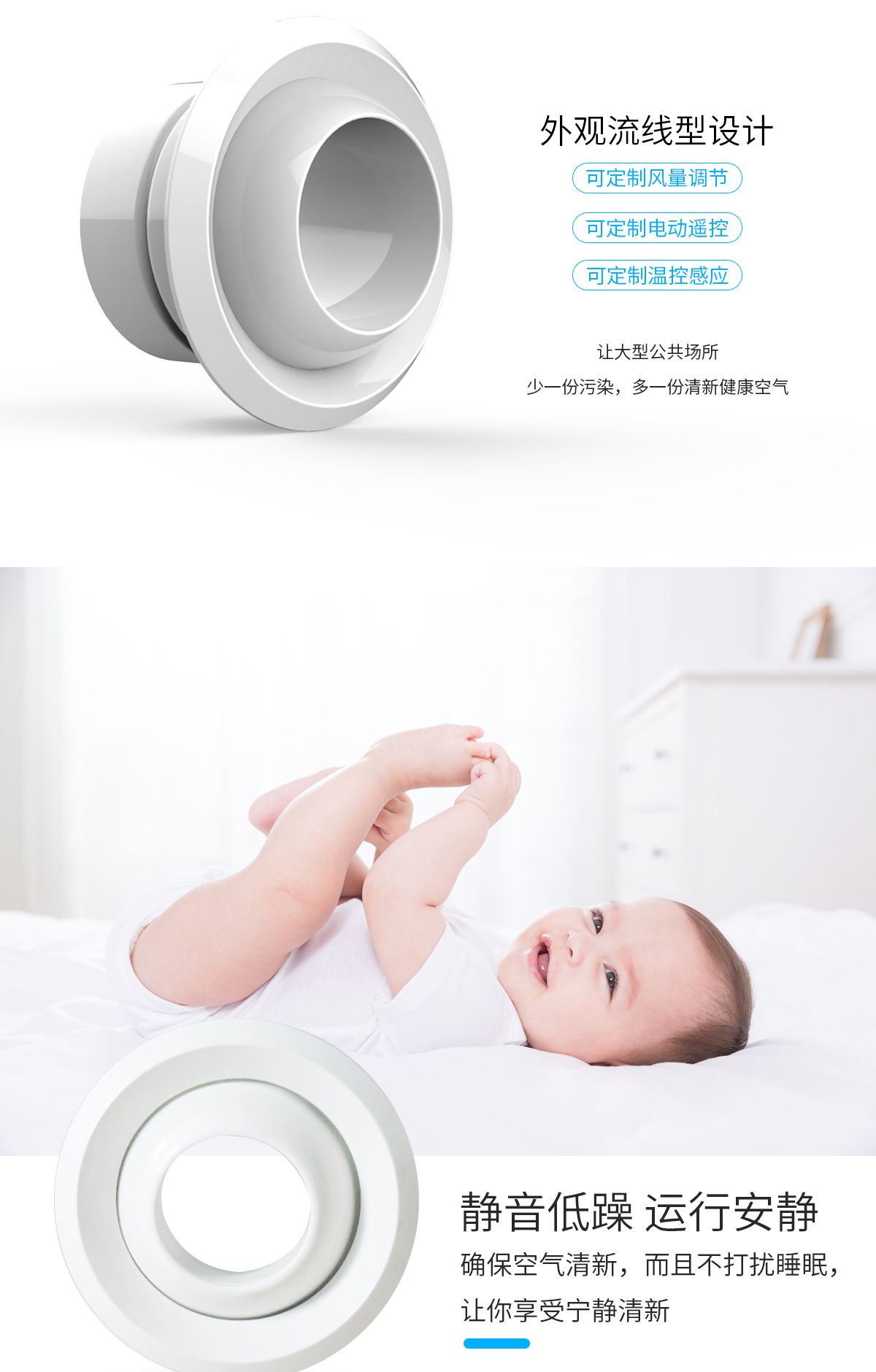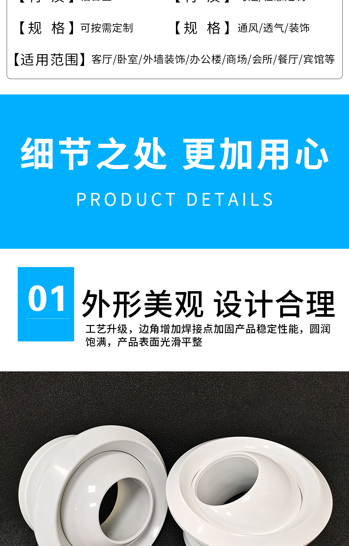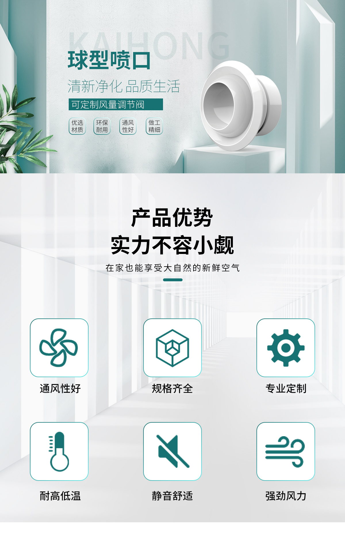 球形噴口適用于遠程距離送風和送風量較大的場所,例如機場、體育館、劇院等 球形噴口可配多葉調節閥,在噴口外就可以調節風量。噴口面板和法蘭為鋁合金,閥體為鍍鋅鋼板